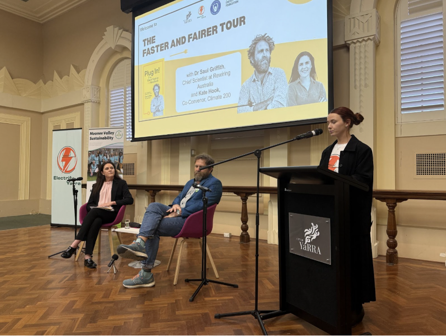 On October 17 we filled Richmond Town Hall with an enthusiastic crowd eager to hear Dr Saul Griffith in conversation. Kate Hook, co-convenor at Climate 200 stepped in at the last moment when Simon Holmes à Court was unable to attend.